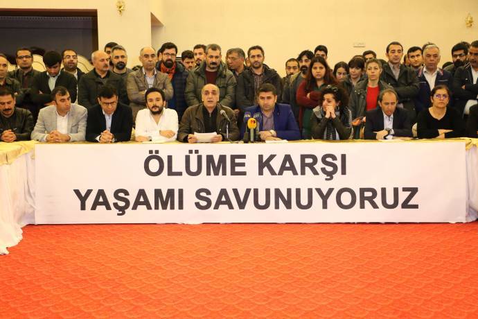 Diyarbakır Emek ve Demokrasi Platformu, PKK Lideri Abdullah Öcalan üzerindeki tecridin kaldırılması talebiyle 150 gündür açlık grevinde olan Demokratik Toplum Kongresi (DTK) Eşbaşkanı Leyla Güven ve cezaevlerinde devam eden eylemelere ilişkin Diyarbakır Sur ilçesinde bulunan bir otelde basın toplantısı düzenledi. 17 ilden 287 sivil toplum örgütünün imzasıyla açıklama yapıldı. “Ölüme karşı yaşamı savunuyoruz” yazılı pankartın asıldığı toplantıda, açıklamayı Emek ve Demokrasi Platformu Dönem Sözcüsü Mehmet Şirin Gürbüz yaptı.