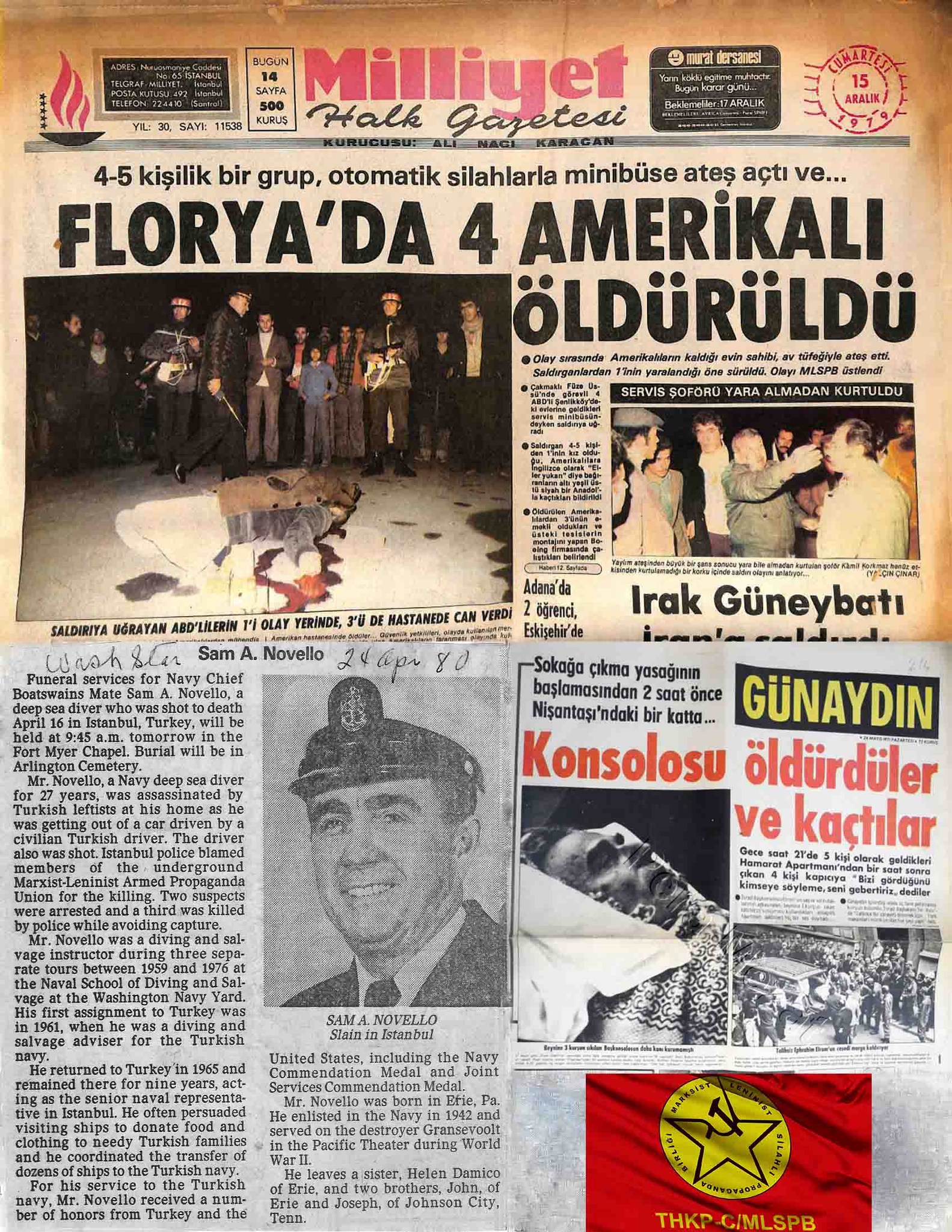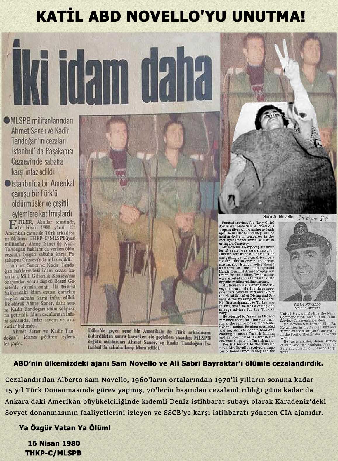 13- 16 Nisan 1980: Beşiktaş’ta ABD’nin ülkemizdeki ajanı Sam Novello ve Ali Sabri Bayraktar’ı ölümle cezalandırdık.